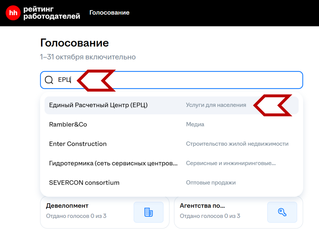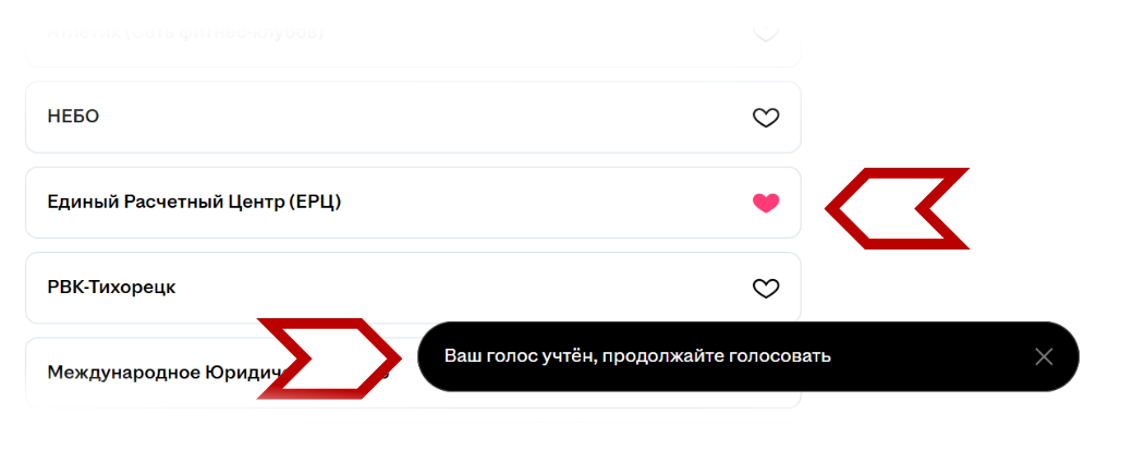 Нажмите на название в результатах поиска, а затем поставьте сердечко рядом с названием: «Единый Расчетный Центр (ЕРЦ)». Появится всплывающее уведомление, что ваш голос принят.